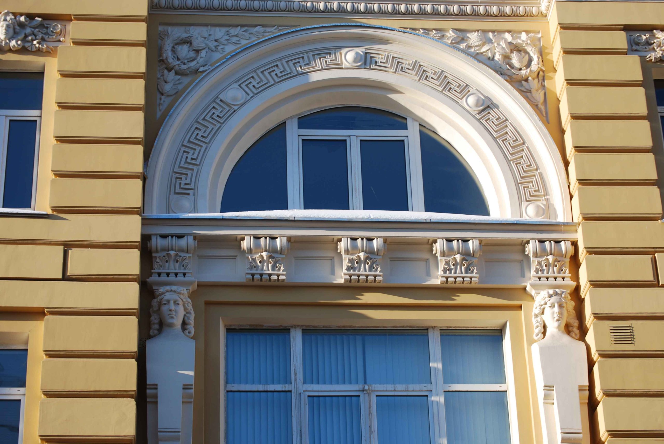 Доходный дом на Покровке, 29, в отличие от своих собратьев, по мнению специалистов, скромен и особыми изысками не блещет. Но это далеко не так. Объемная композиция парадного фасада сохранила стилистическую цельность и несет в себе ярко выраженные черты «неоклассики». Скульптурный и близкий к «модерну» декор имеет центральный ризалит в три оси с нишей, проездной аркой, скульптурным и лепным декором. Женские фигуры, лица – это не просто «цитаты» из античности, а мощное средство художественной выразительности, рассказывающее о назначении здания и его статусе.
